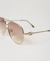 Metal aviator sunglasses with metal Oval T logo on the side and matching case.