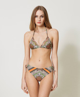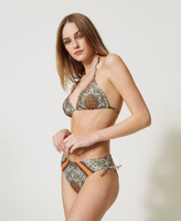 Bikini bottom with scarf print, adjustable with drawstring and laces on the sides and heart-shaped logo on the back.