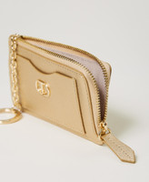 Card holder made from faux leather with Saffiano print and metal Oval T, zipped pocket for coins and keyring.