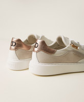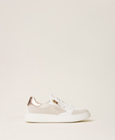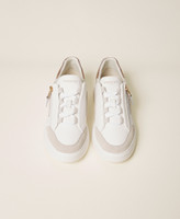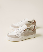 Colour block leather trainers with zip and printed logo on the side, rubber sole.
