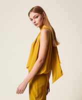 Viscose crêpe de Chine top with sash collar that can be tied at the back, elasticated hem, loose fit. This item is part of the “Archive” range, inspired by the most iconic and most loved garments from the Twinset collections.