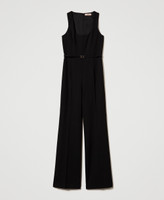 Flared leg jumpsuit with Oval T waist strap