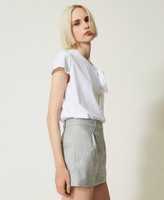 - 60% metallic polyester 39% viscose 1% elastane. Pocket lining: 100% polyester.