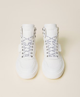 Actitude collection high top trainers with logo laces and metal joints, contrasting colour on the back, rubber sole.