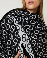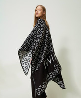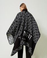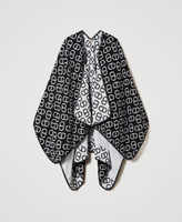 Two-tone jacquard poncho with Oval T logo, leather-like trim and logo on the back.