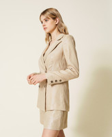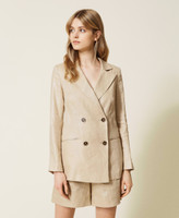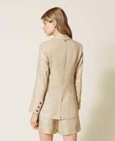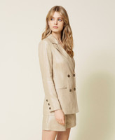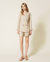 Laminated linen blazer, wide fit, double-breasted closure with buttons, lapels, welt pockets.