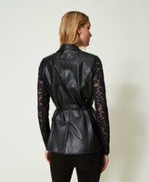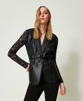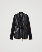 - 100% polyester. Material 2: 91% polyamide 9% elastane. Lining: 100% polyester. Belt: 100% polyester