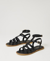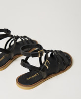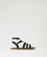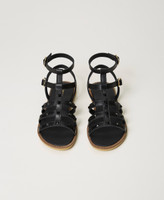 Leather cage sandals with matching studs, straps and buckles, and tunit sole.