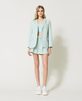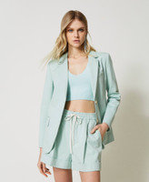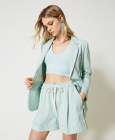 Add to your seasonal wardrobe these shorts made from Italian cotton and linen gabardine with special treatment for a soft and fresh feel. Adjustable waist with elastic and gros-grain drawstring, slant pockets, folded hem, permanent crease. Match them with their coordinated blazer to create a new trouser suit.