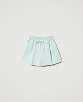 Cotton and linen shorts with elasticated waist and drawstring, slant pockets, and folded hem.