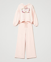 Cotton set consisting of hoodie with embroidered Oval T logo and wide leg trousers with drawstring.