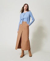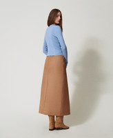 Long cotton blend twill skirt with belt loops, central slit at the front, hook and zip fastening, slant pockets at the sides, heart-shaped metal logo on the pocket, straight fit.