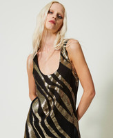 Maxi georgette tank top with Cornely gold-tone sequin embroidery with animal pattern, jersey on the back.