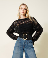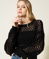 Mohair blend mesh jumper with long sleeves and slouched shoulders, loose fit.