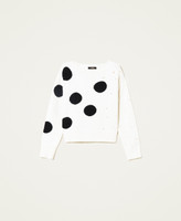 Actitude collection wool blend jumper with maxi jacquard polka dots and openwork, crew neck, long sleeves.