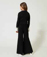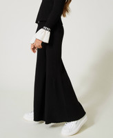 Viscose blend ribbed palazzo trousers with metal Oval T logo, elasticated waist.