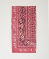 Silk and modal blend kefiah with contrasting logo print and paisley pattern.