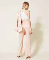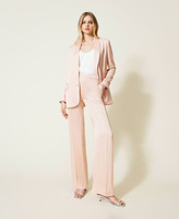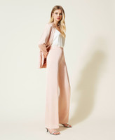 Viscose satin palazzo trousers with covered elastic at the waist, side pockets, logo on the back.