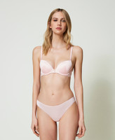 Push-up bra made from stretch satin, padded with removable cups, underwire and adjustable shoulder straps.