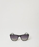 Square frame acetate sunglasses with metal Oval T logo and matching case.