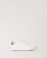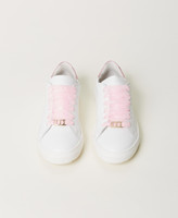 Leather trainers in total white with tulle laces, laminated heel, rubber box sole.