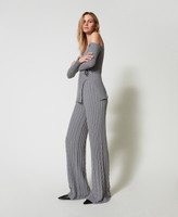 Treeblend yarn flared trousers with cable knit pattern