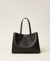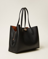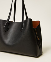 Two-tone effect shopper bag made from faux natural grain calf leather. Double shoulder strap, internal side compartments with magnet closure, large central compartment closed with a zip, metal Oval T logo, no lining. Perfect for everyday and office use.