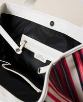 Actitude collection shopper made of striped canvas, magnet closure, double handle, logo ribbon.