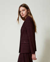 - 67% polyester 30% viscose 2% elastane 1% metallic polyester. Lining: 100% polyester. Material 2: 100% metallic polyester
