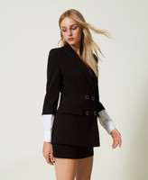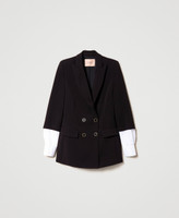 - 65% polyester 32% viscose 3% elastane. Lining: 100% polyester. Cuffs: 100% cotton.