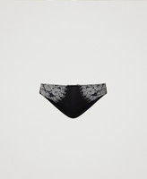 Regular briefs with lace on the sides, microfibre charmeuse for back and front, logo bow on the rear.