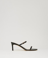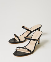 Coconut effect sandals with double strap and metal buckle, thin heel, tunit sole.