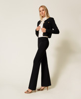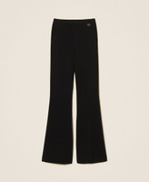 Crepe viscose knit trousers with elasticated waist and Oval T logo plate, flared.