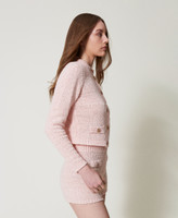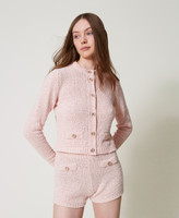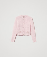 Cotton blend plain knit jacket made in Italy with Oval T logo button fastening, mock pockets, crew neck, long sleeves, ribbed trims, loose fit.