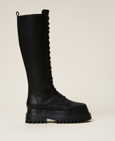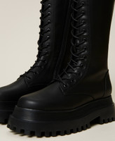 Actitude collection high combat boots with front fastening, inner zip, high rubber lug sole.