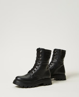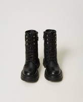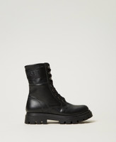Leather combat boots with logo