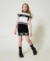 Girls’ leather combat boots with fabric band with lettering logo at the back, trekking-style fastening and chunky rubber sole.