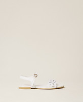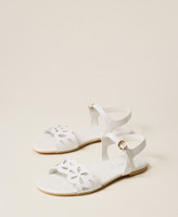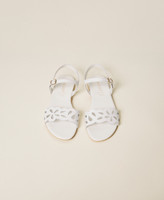 Girls’ leather sandals with ankle strap and floral laser pattern, tunit sole.