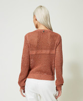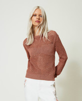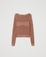 Actitude collection cotton and lurex mesh jumper with top-like plain knit work and ribbed trim.