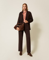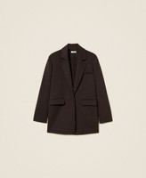 Scuba blazer with matching button. Lapels, front pockets with flaps, central seam at the back, metal logo plate, crêpe de Chine lining, oversized.