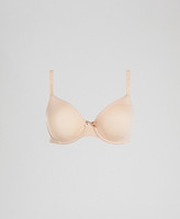 Underwire bra with preformed cup, bow in the middle, logo straps, non padded.