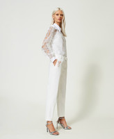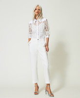 - 98% cotton 2% elastane. Material 2: 100% polyester. Material 3: 100% polyester