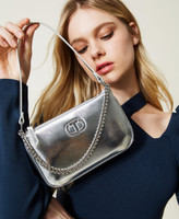 'Petite' leather-like laminated bag with Oval T logo, zip closure and shoulder straps that can be used jointly or separately. Twinset spreads its message of welcome and kindness in all the world's languages: 'Petite' means little in French.