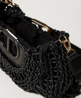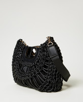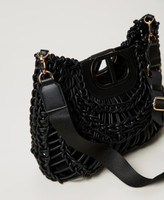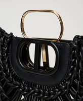 ‘Lila‘ hand-woven shopper in tubular faux nappa leather. Featuring a tonal grab handle, a removable adjustable shoulder strap in tonal webbing, and a removable bag in lightweight tonal canvas with drawstring. Inside the logo are two rings that can be folded inwards and used as additional handles.