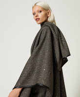 This chevron poncho with sequins features leather-like trim, personalised with logo Oval T. The ideal choice to elevate every daily look.