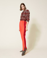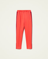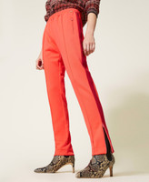 Cotton blend interlock fabric cigarette trousers with elasticated waist, zipped slits at the hem.