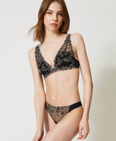 - 100% polyamide. Material 2: 77% polyamide 23% elastane. Embroidery: 100% polyester. Material 3: 100% cotton. Lining: 82% polyamide 18% elastane.
