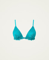 Embroidered tulle padded triangle bra with removable cups and logo straps.
