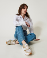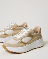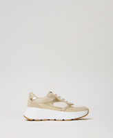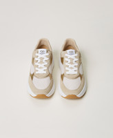 Leather running trainers with suede inserts, laminated details and lettering logo. Chunky rubber soles.
