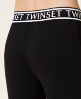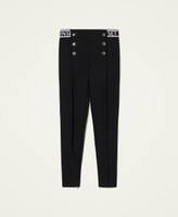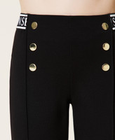 Milano stitch leggings with elastic logo at the hips and back, decorative gold tone buttons, invisible zips at the hem.